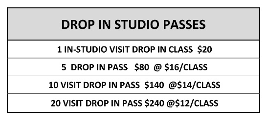 Lots of new offerings happening this Fall, plus a modest price increase for Drop In Classes starting November 1st. (Note the discount remains in place.)